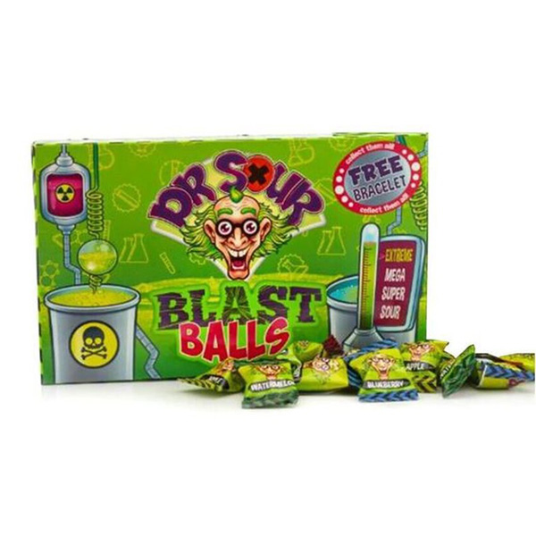 ¡Estas Sour Blast Balls de Dr.Sour lo tienen todo! Muy ácidas con diferentes sabores de frutas que realmente te hacen hacer muecas, ¿estás listo para eso?