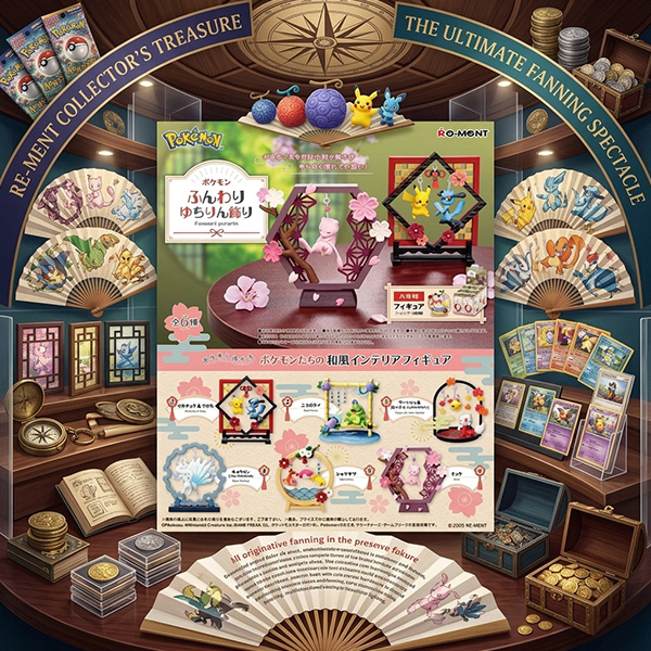 Colección Re-Ment Pokémon Fluffy Swinging Ornament, con Pokémon columpiándose o balanceándose en escenas naturales. Estilo cute, detallado y muy decorativo, ideal para fans y coleccionistas.