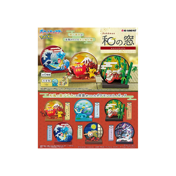 Una colección con figuras de estética tradicional japonesa, que muestra a los Pokémon en ventanas de estilo shōji. Decorativa y muy elegante.