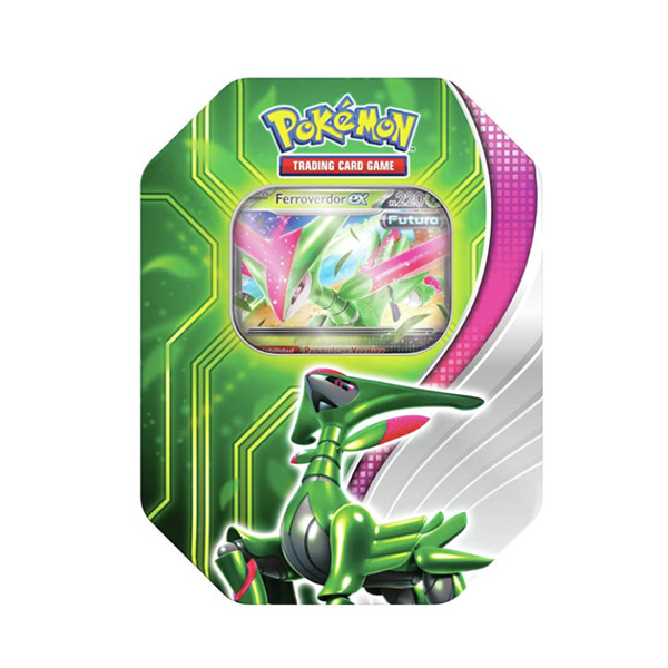 La lata de cartas Pokémon SV6 con Ferreverdor EX contiene un total de cartas que se desglosan de la siguiente manera: 1 carta promocional holográfica con Ferreverdor ex. 4 sobres de cartas Pokémon TCG. Cada sobre contiene 10 cartas jugables + 1 carta de Energía Básica + 1 carta con un código para jugar online. 1 carta con un código para el juego de cartas coleccionables Pokémon Live.