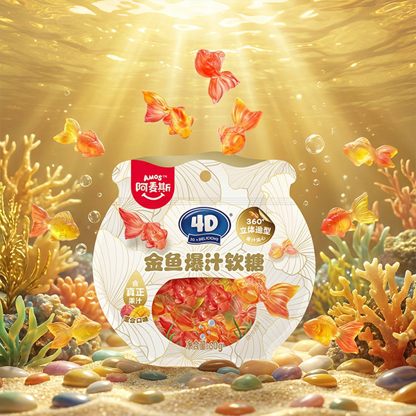 Get ready to dive into a sea of fruity fun with AMOS 4D Gummy Lucky Fish! These aren’t just ordinary gummies; they are tasty treasures shaped like realistic 3D goldfish! Each gummy is a cool, detailed 3D fish! Look closely and you’ll see the scales, fins, and eyes, just like a real (but much sweeter) goldfish. The gummies feature a blend of peach and mango flavors, often with a juicy or concentrated fruit filling.