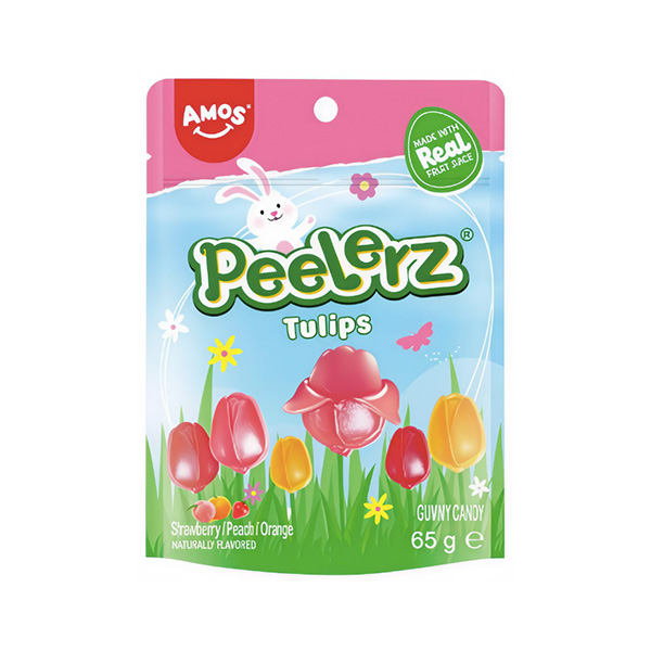 Get ready for a candy adventure! Amos Peelerz Gummy Tulips are not just yummy treats; they are an interactive, peel-and-play experience that makes snack time fun! The Candy You Can Peel! It’s a Puzzle and a Treat: Unlike regular gummies, you get to unwrap these like a real fruit! Each one has a flexible outer layer that you can gently peel away to reveal the super soft, juicy gummy center. It’s a mystery and an activity all in one! Springtime Fun Shapes: These aren’t just any gummies—they’re shaped like beautiful Easter tulips! Imagine a garden of colorful, fruity flowers you can pick and peel. Bursting with Real Fruit Flavor: Made with real fruit juice, every bite is a flavor explosion! The outside has a chewy texture, while the inside is softer and extra fruity. TikTok Famous Fun: The Peelerz are a huge hit online! They’ve gone viral on social media because the peeling is so satisfying to watch and do. You can even show your friends how you peel yours! Two Candies in One: You can eat the chewy outer “peel” and the soft inner “flower” separately, or pop the whole thing in your mouth for double the fun!