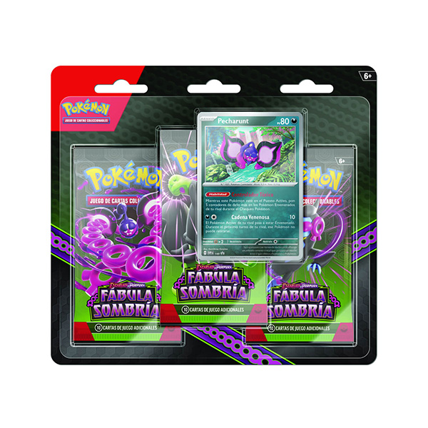 This Pack Contains three Scarlet & Violet booster packs Shrouded Fable and a foil promo card featuring Pecharunt.