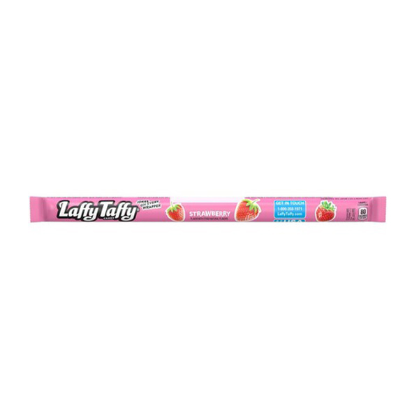 The candies are small, individually wrapped taffy rectangles available in a variety of colors and artificial fruit flavors. The name “Laffy Taffy” refers to both the texture of the taffy as well as its embodiment of silliness. This pack contains strawberry Flavor!