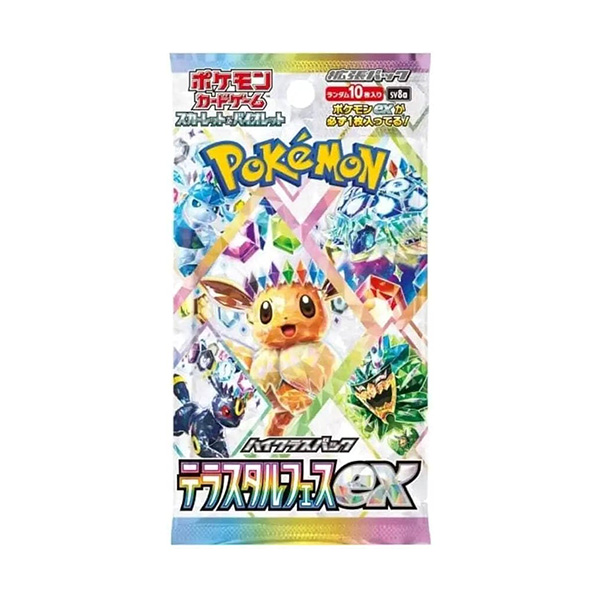 The Pokémon Terastal Festival EX (SV8a) is a “High Class Pack” set released in Japan on December 6, 2024. This special holiday set heavily features the Eeveelutions in their Tera forms and acts as a centerpiece for the Scarlet & Violet era.