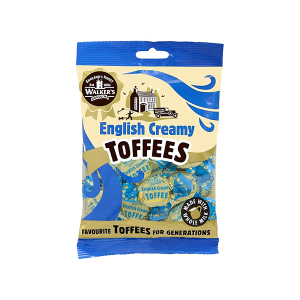 Walker’s Nonsuch English Creamy Toffees are smooth, buttery, and rich traditional British toffees, individually twist-wrapped in a bag.